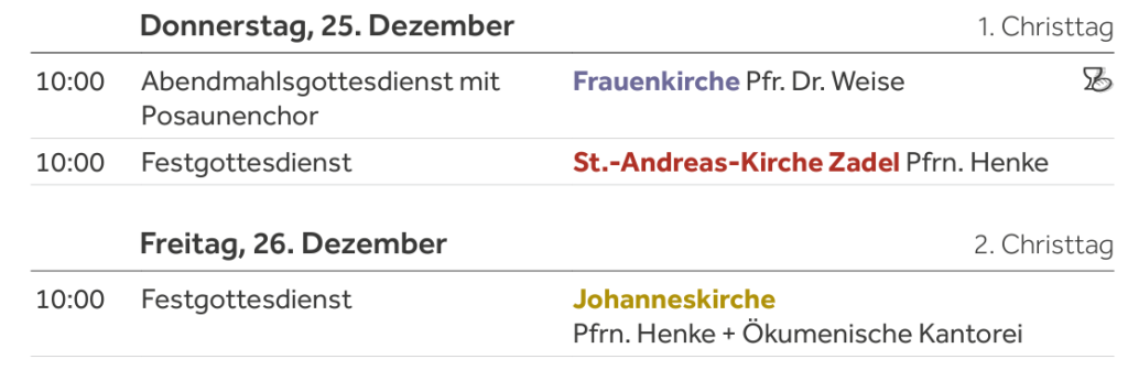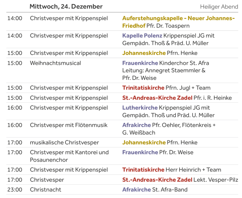 Der Kirchgemeindebund „Meißner Land“ lädt zum Weihnachtsfest in Meißen zu folgenden Veranstaltungen ein: